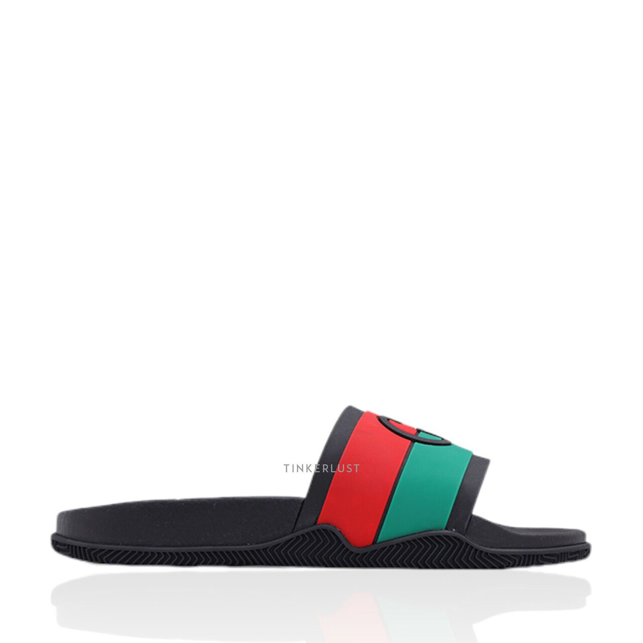 sepatu sandals Gucci Interlocking G Slides Black Red Green Sandals Tinkerlust Very well made.