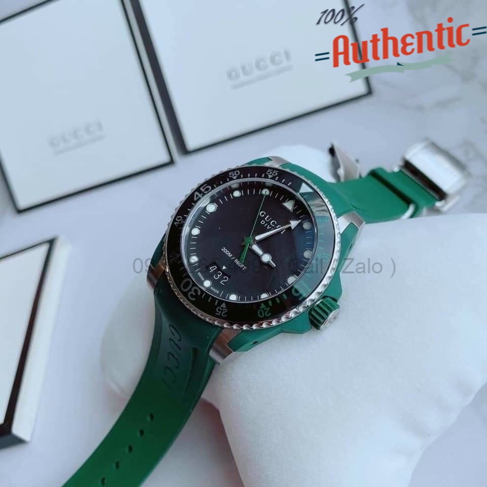 Gucci Dive Black Dial Green Rubber Strap Watch For Men Very well made.
