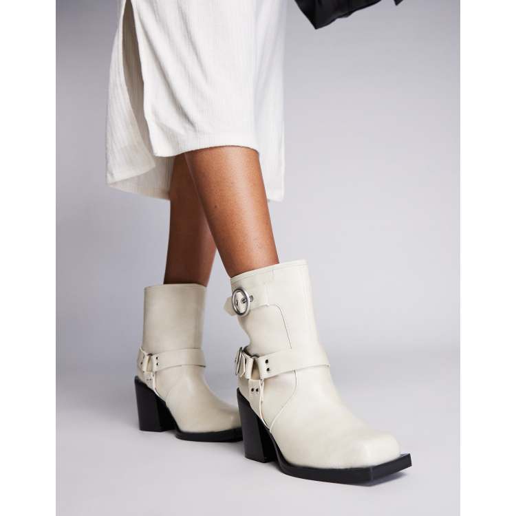 Brooks Buckle Ring Detail Ankle Biker Boot In Black Faux Leather EGO Very well made.