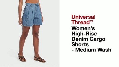 Women s High rise Denim Cargo Shorts Universal Thread Medium Wash Target Very well made.