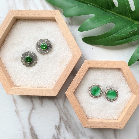 Sizable Jadeite Jade Earrings Ring Set Halo Gem Gardener Very well made.