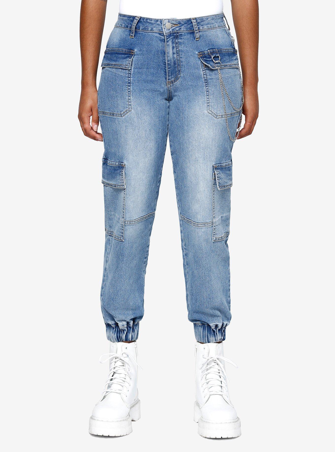 Light Indigo Cargo Side Chain Denim Jogger Pants Hot Topic Very well made.