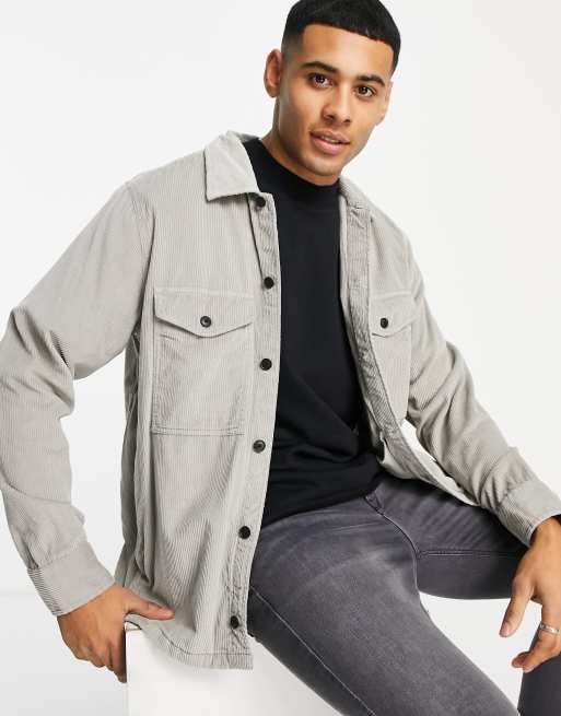 BOSS Loflash long sleeve cord overshirt in open grey Very well made.