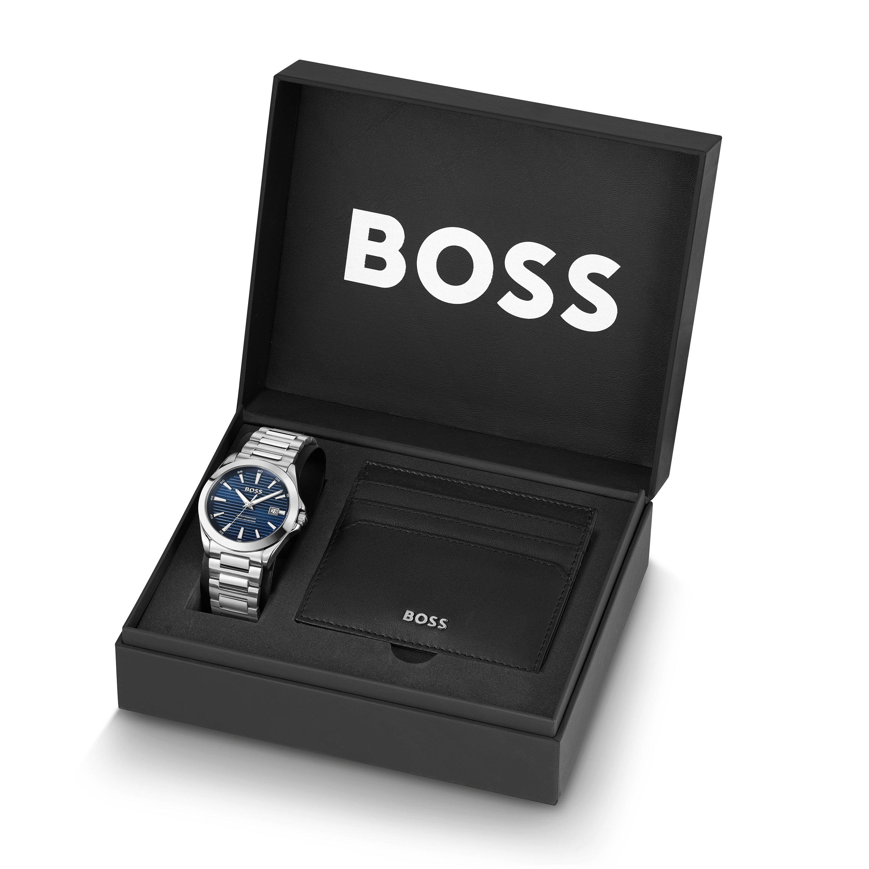 BOSS Strike 41mm Stainless Steel Men s Watch and Wallet Set 1570182 41 mm Blue Dial Beaverbrooks Very well made.