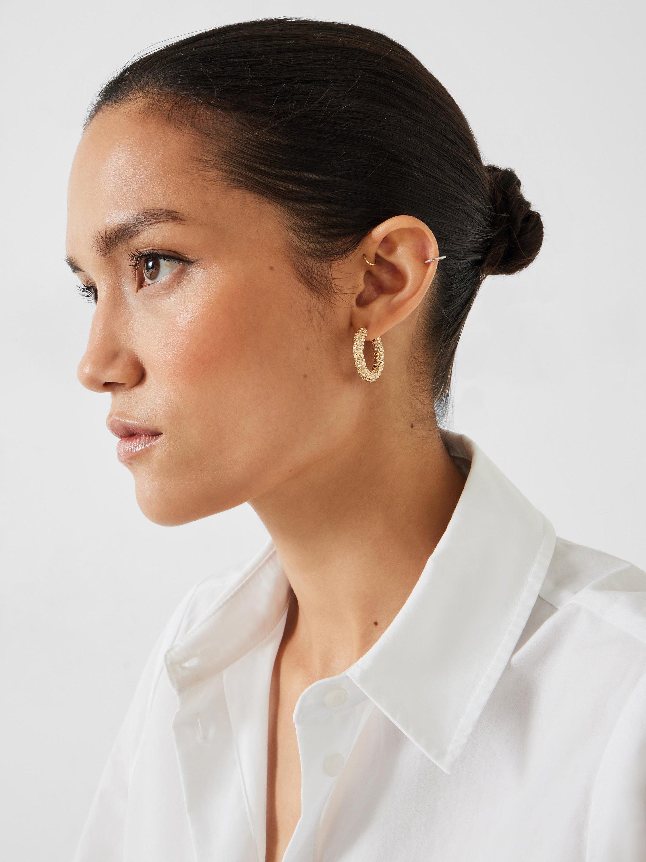 HUSH Camille Crystal Textuted Hoop Earrings Gold One Size Very well made.