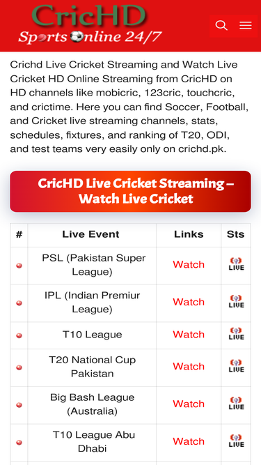 Download CRICHD Cricket Live Streaming 1.0.0 APK for Android Free and Safe Download Very well made.