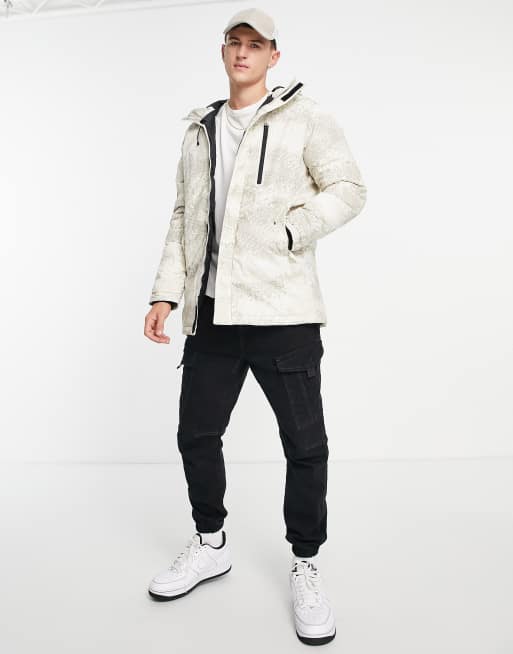 Jack Jones Core parka with hood in white digital print Very well made.