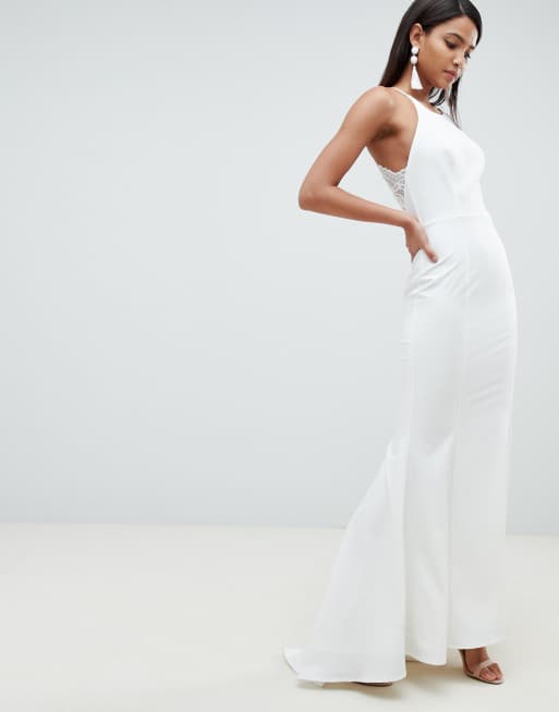 Jarlo cami strap fishtail maxi dress with lace button back detail in white ASOS Very well made.