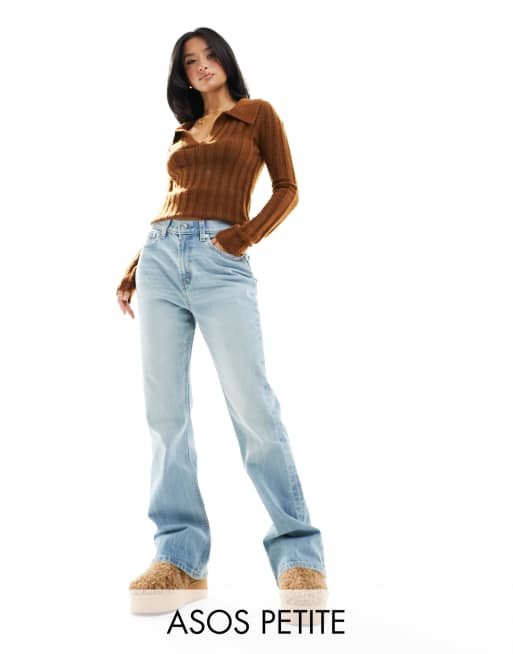 ASOS Petite ASOS DESIGN Petite Jeans cropped elasticizzati a zampa e vita alta effortless in lavaggio medio con strappi sulla coscia Blu Stileo Very well made.