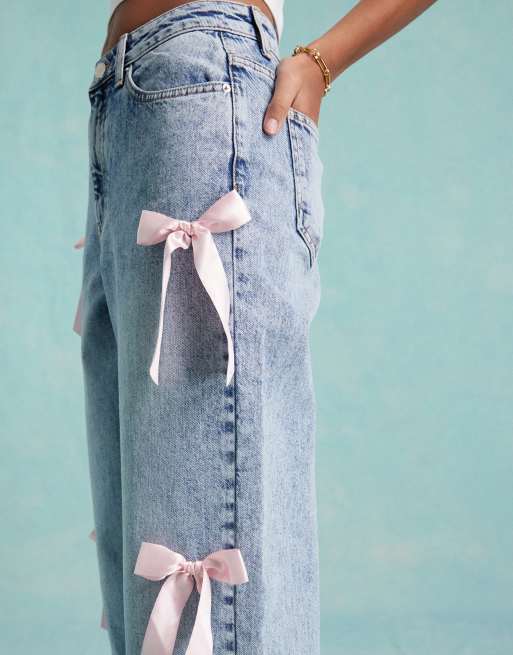 Miss Selfridge Jeans larghi lavaggio acido con fiocco in raso a contrasto Very well made.