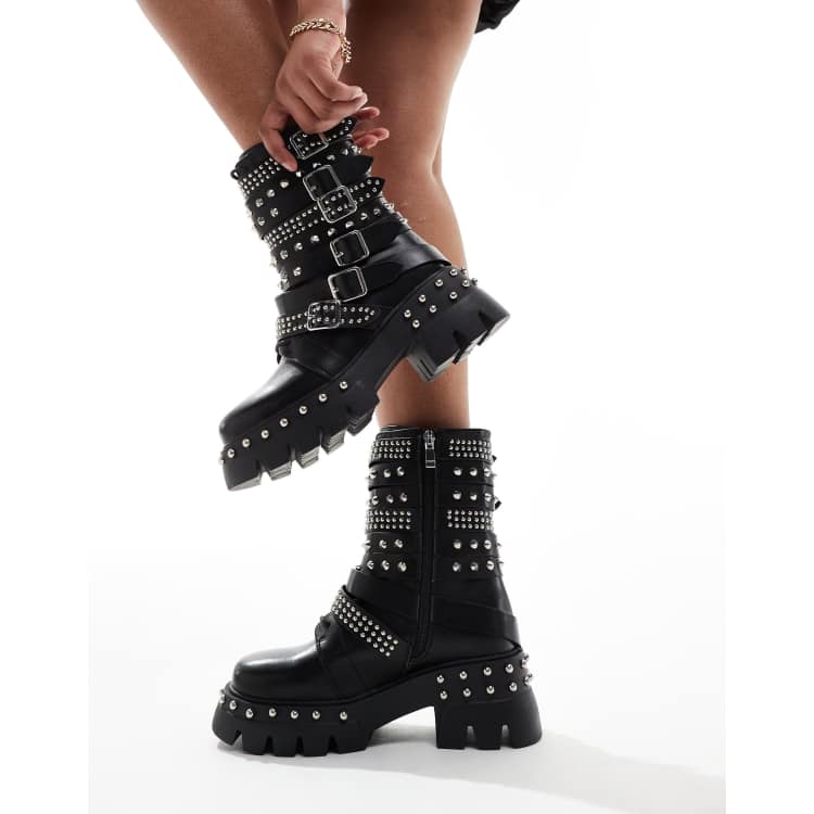 Azalea Wang Winola studded buckle chunky ankle boots in Silver ASOS Very well made.