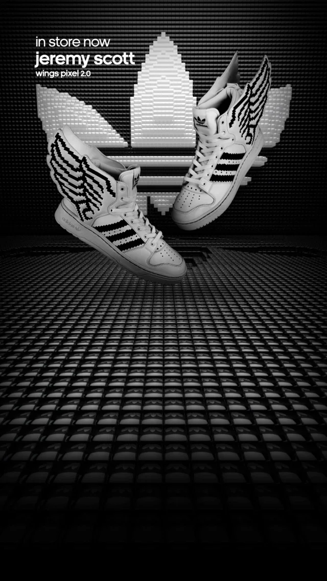 Courtesy Of Japan Adidas x Jeremy Scott 2.0 Pixel Wings Incredible collaboration between Moschino creative director Jeremy Scott and Adidas released about. Instagram Very well made.