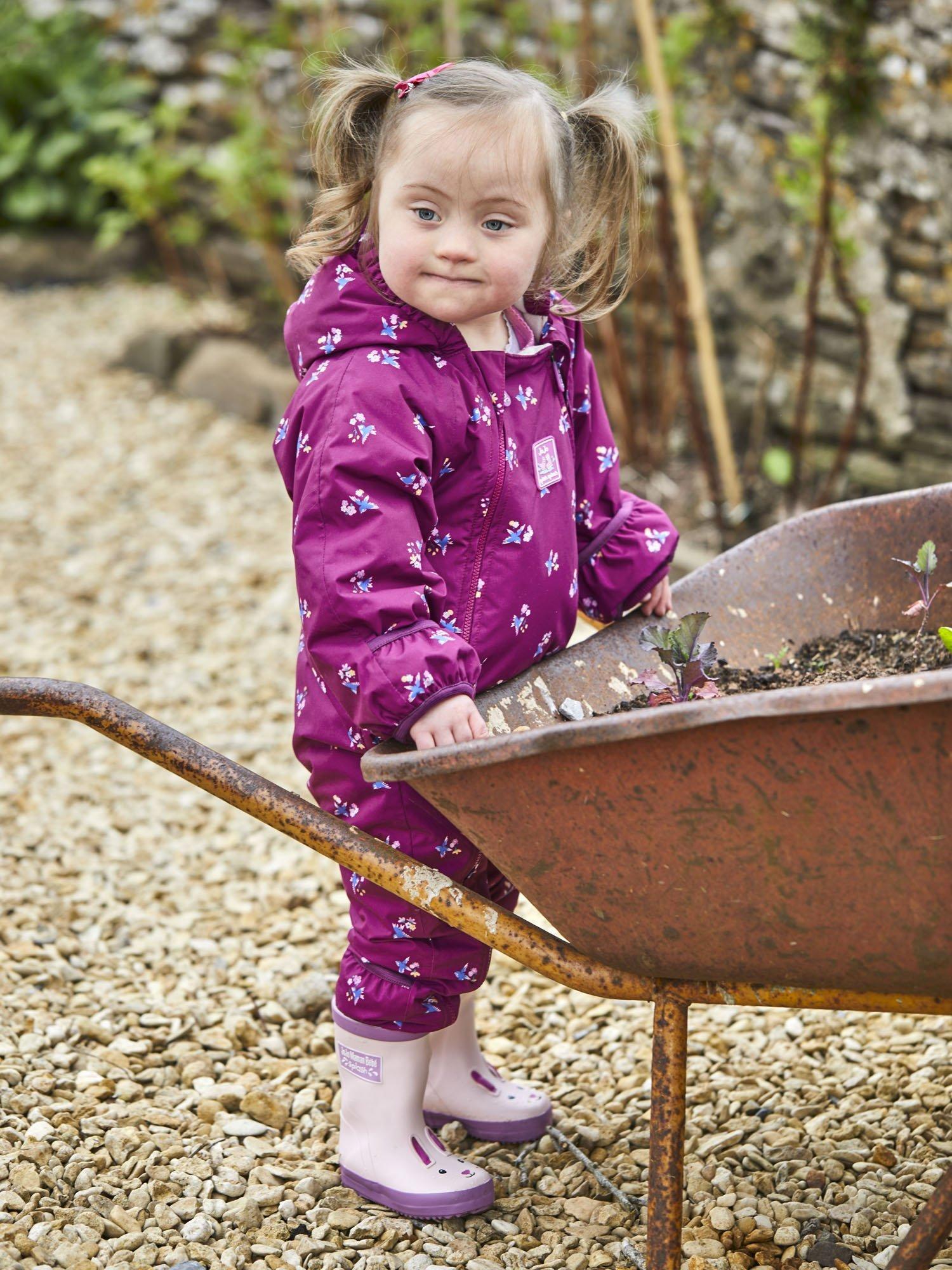 JoJo Maman Bebe Baby Waterproof Fleece Lined Puddlesuit Berry Very well made.