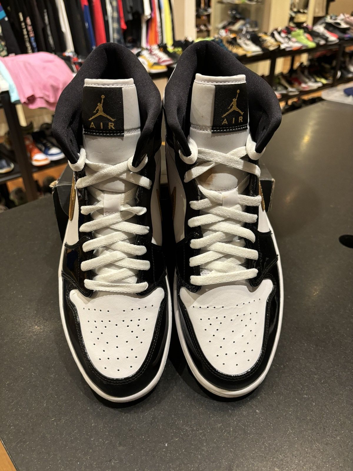 Jordan 1 Mid Patent Black White Gold soleHub Very well made.