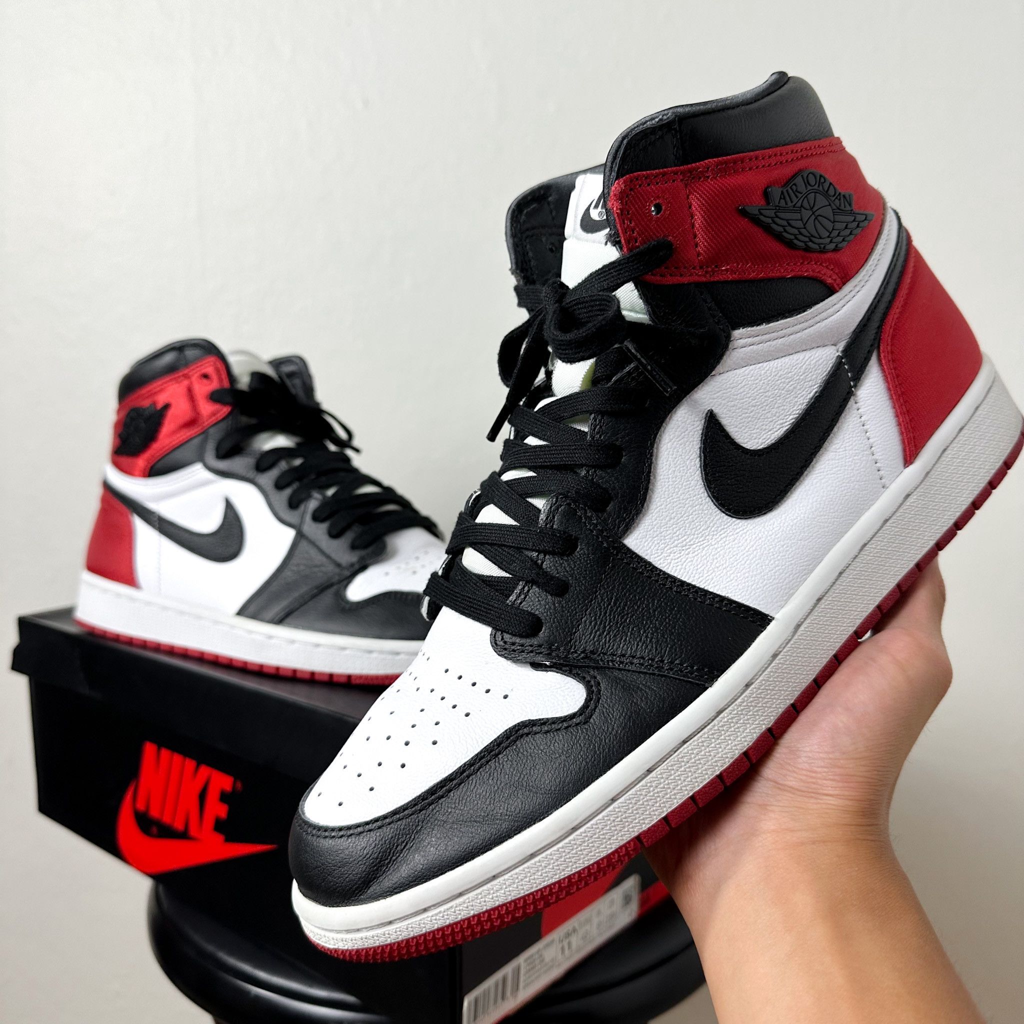 Jordan 1 Satin Black Toe Vaulted Laces Very well made.