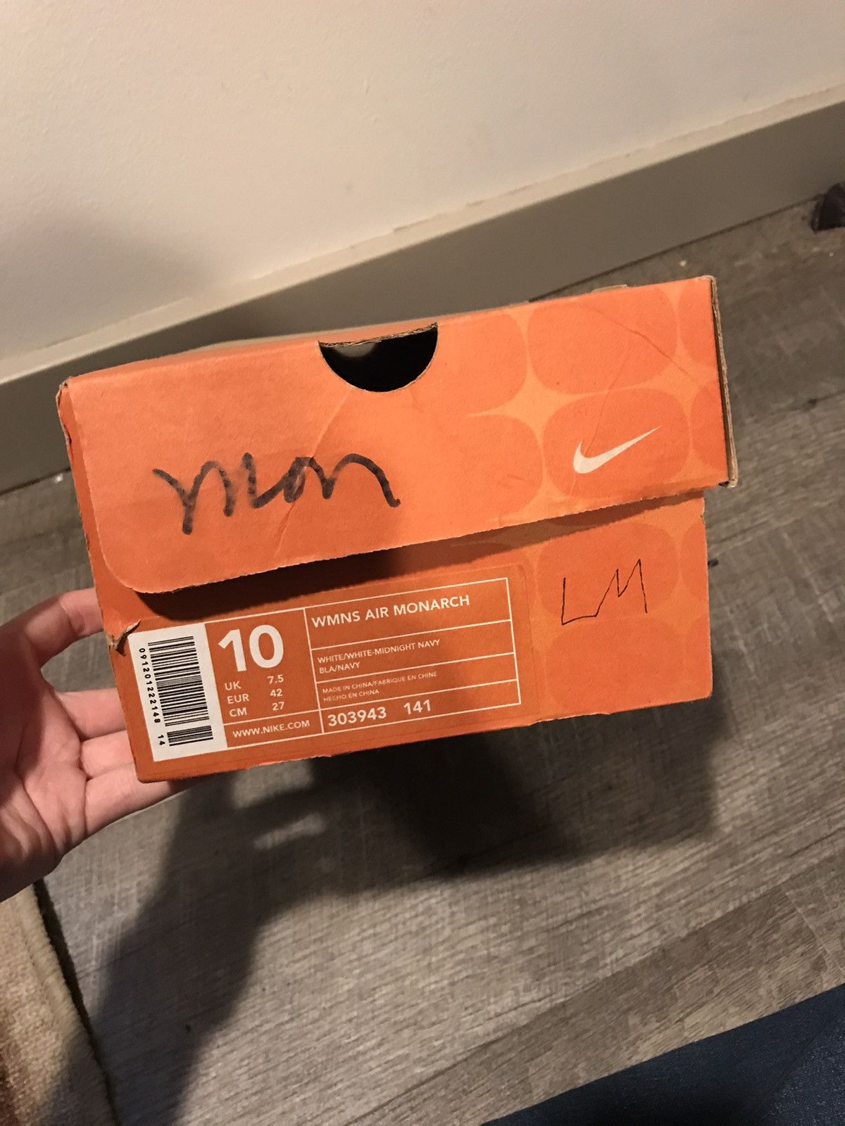 19. NIKE AIR MONARCH IV WHITE NAVY SIZE EUR. 41 26 CM. PRICE 990 THB. Thankyou2hand. Instagram Very well made.
