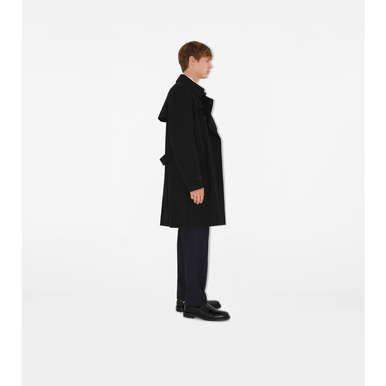 Mid length Kensington Heritage Trench Coat in Black Men Cotton Gabardine Burberry Official Very well made.