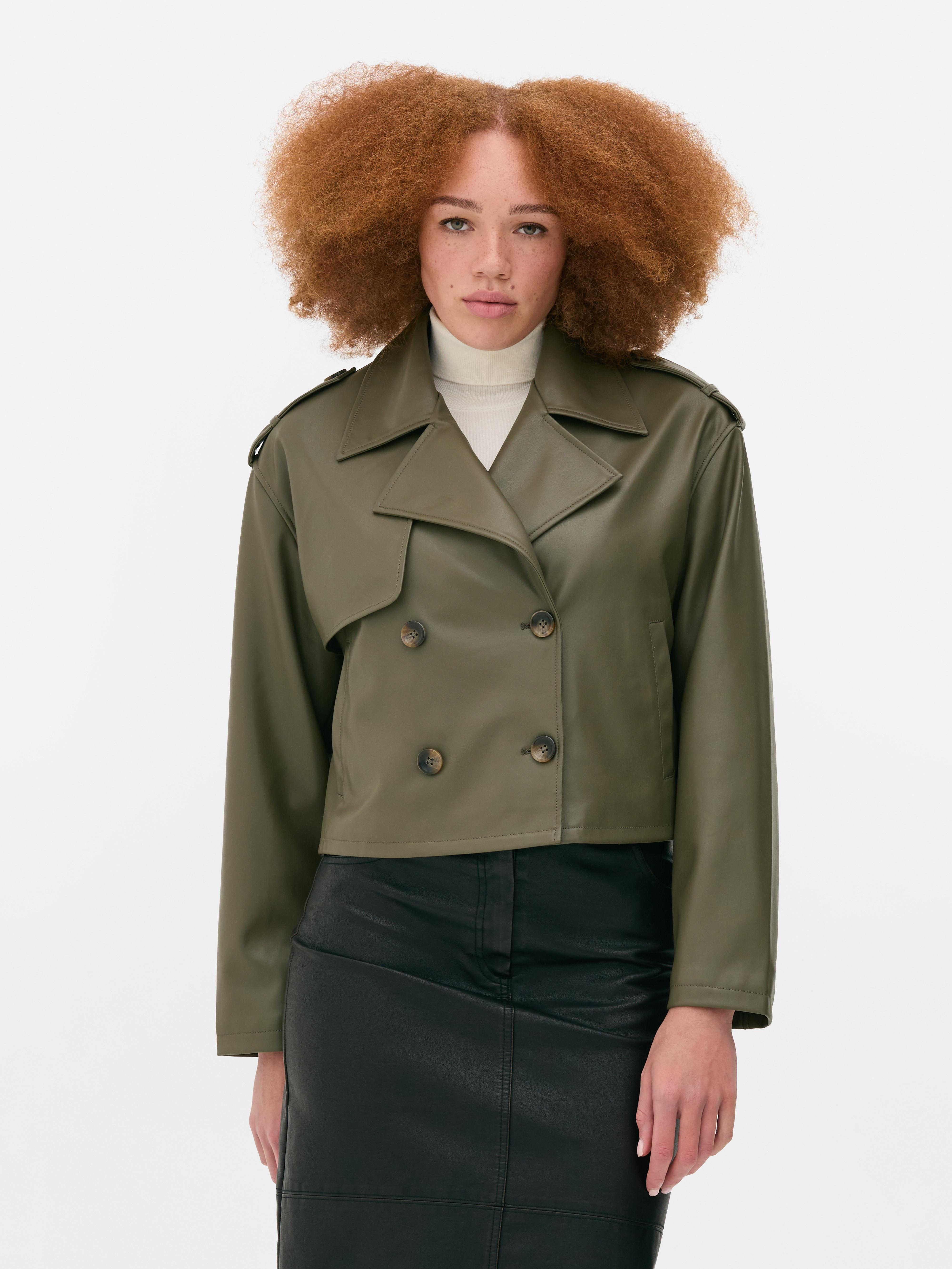 Womens Khaki Cropped Faux Leather Trench Coat Primark Very well made.