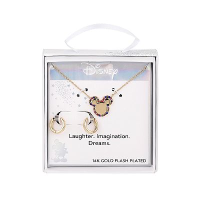 Disney s Mickey Mouse 14k Gold Flash Plated Multicolored Crystal Necklace and Hoop Earring Set Very well made.