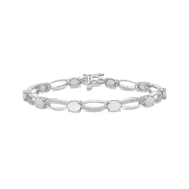 14k Gold Over Silver 1 10 Carat T.W. Diamond Lab Created White Opal Link Bracelet Very well made.