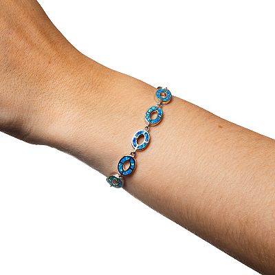 Sterling Silver Lab Created Opal Lab Created White Sapphire Lab Created Spinel Bracelet Very well made.