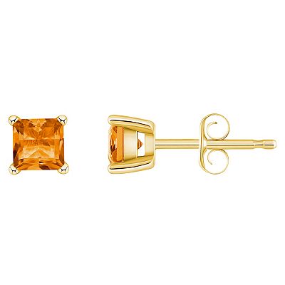 14k Gold 4 mm Princess Cut Citrine Stud Earrings Very well made.