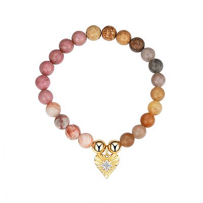 Love This Life 14K Gold Tone Heart and Star Charm and Multicolor Stone Stretch Bracelet Very well made.