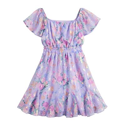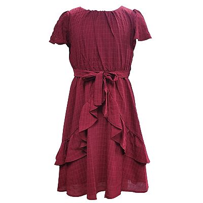 Girls 6 16 Three Pink Hearts Short Sleeve Ruffled Chiffon Dress Very well made.