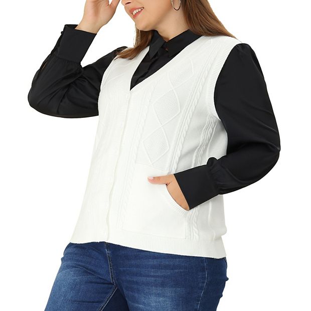 Plus Size Cable Knit Sweater Vest for Women Button Sleeveless Pocket Cardigan Vests Outwear Very well made.