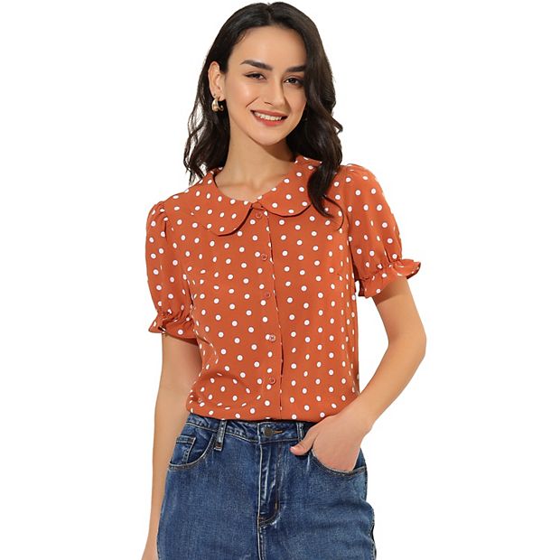 Women s Polka Dots Doll Collar Puffy Short Sleeve Shirt Top Very well made.