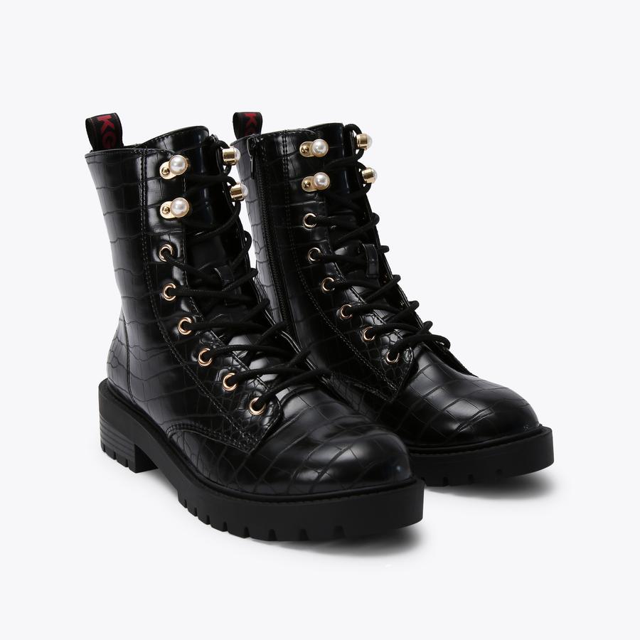 TILLY3 Black Croc Lace Up Boots by KG KURT GEIGER Very well made.
