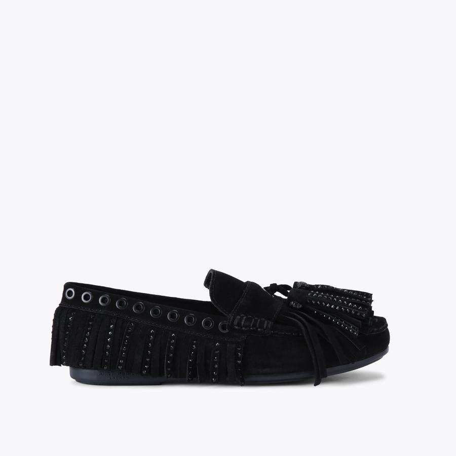TASSEL FRINGE MOCCASIN Black Suede Slip On Shoes by KURT GEIGER LONDON Very well made.