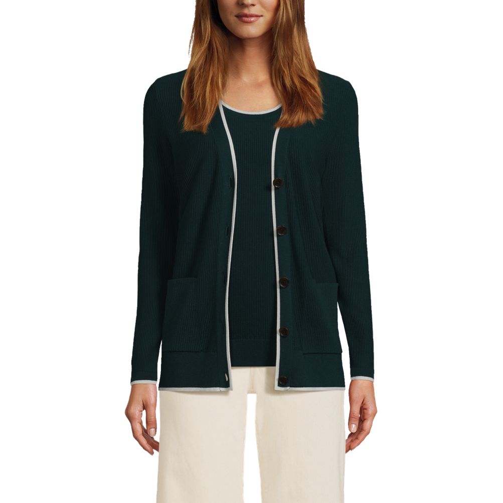Women s Fine Gauge Cotton Cardigan and Tank Sweater Set Lands End Very well made.
