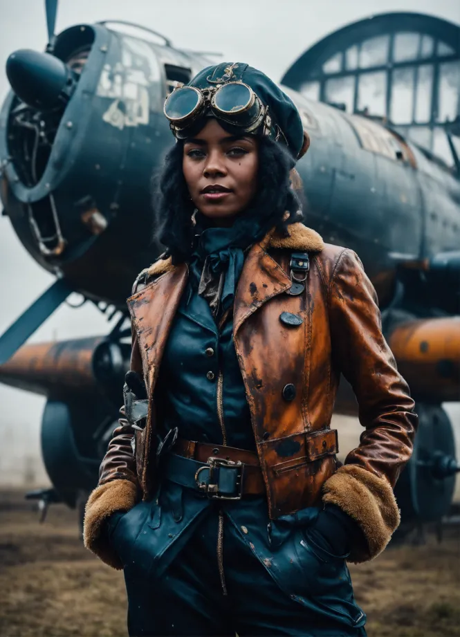 Lexica beautiful woman in brown leather pilot jacket Very well made.
