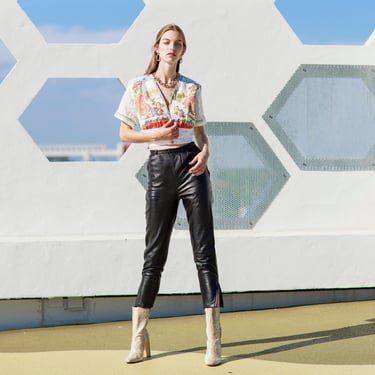 80s Black Motorcycle Leather Pants Vintage High Waisted Straight Trousers Apple Branches Vintage Miami FL Very well made.