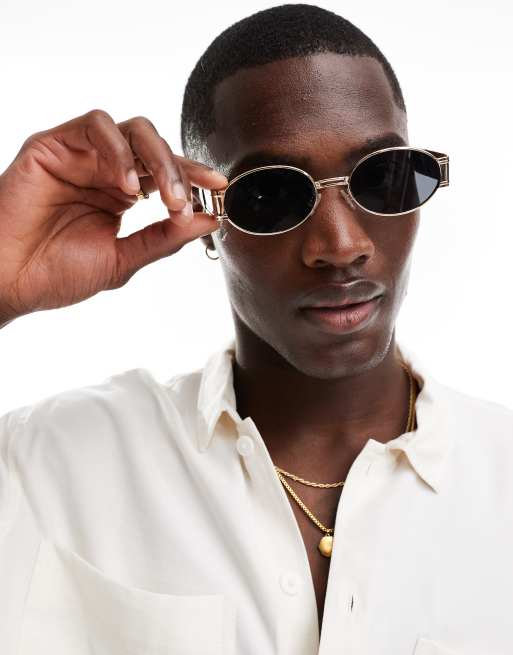 ASOS DESIGN Occhiali da sole arrotondati con lenti fume montatura dorata e stanghette spesse ASOS Very well made.