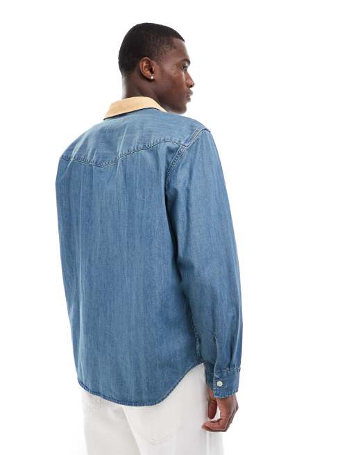 Levi s contrast collar relaxed fit western denim shirt in mid blue ASOS Very well made.
