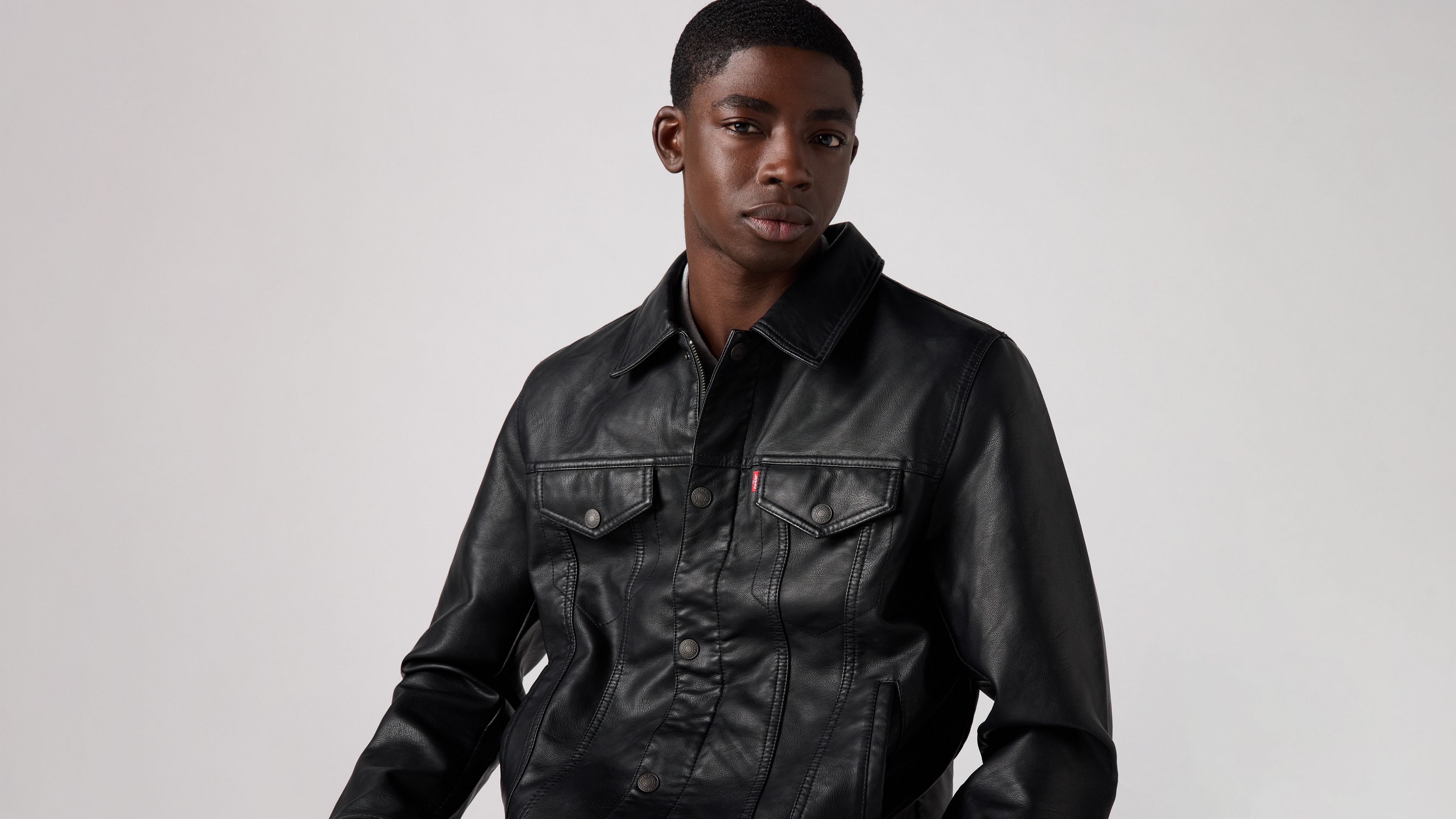 Faux Leather Trucker Jacket Black Levi s GB Very well made.