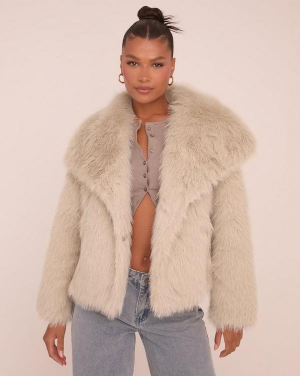 Oversized Collar Coat In Light Grey Faux Fur EGO Very well made.