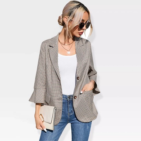 Womens 3 4 Sleeve Casual Blazer Lightweight Jacket With Ruffle Sleeve Open Front Plaid Longline Blazer Jacket Notched Lapel Womens Blazer Cardigan Target Very well made.