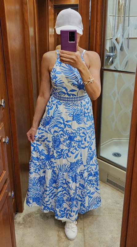 Lilly Pulitzer Serena V Neck Maxi Dress Celestial Blue Seek and Sea Engineered Maxi 0 at Amazon Women s Clothing store Very well made.