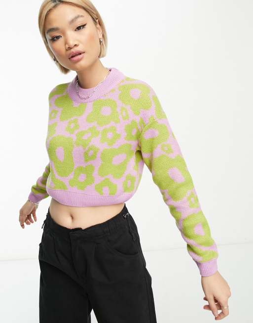 Noisy May cropped jumper in lime purple floral ClassicfuncenterShops Very well made.