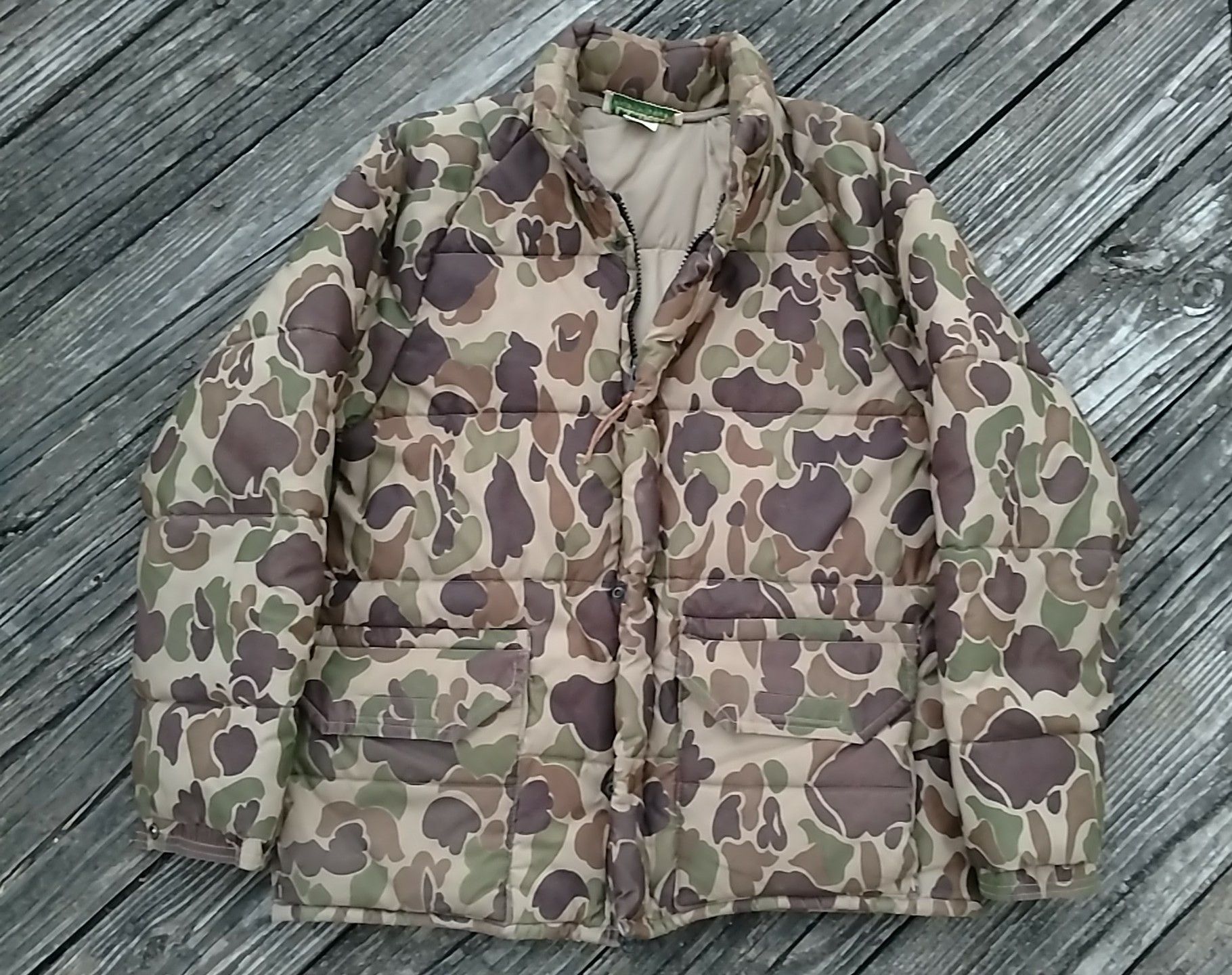 Vintage L.L. Bean Jacket Mens Large Brown Duck Camo PVC Hunting Outdoo Proper Vintage Very well made.