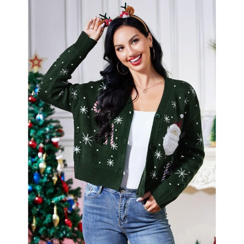LUBOT 2024 Ugly Christmas Sweater for Women Christmas Cardigans Long Sleeve Red Fala Very well made.