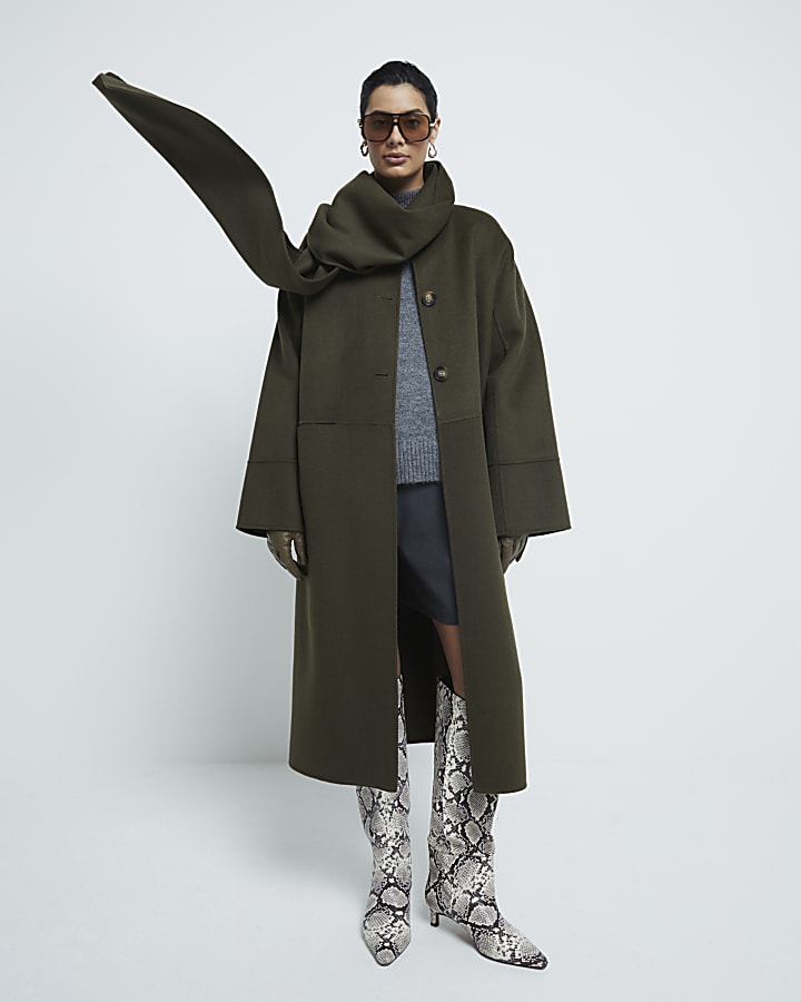 Khaki Premium Wool Blend Scarf Coat River Island Very well made.