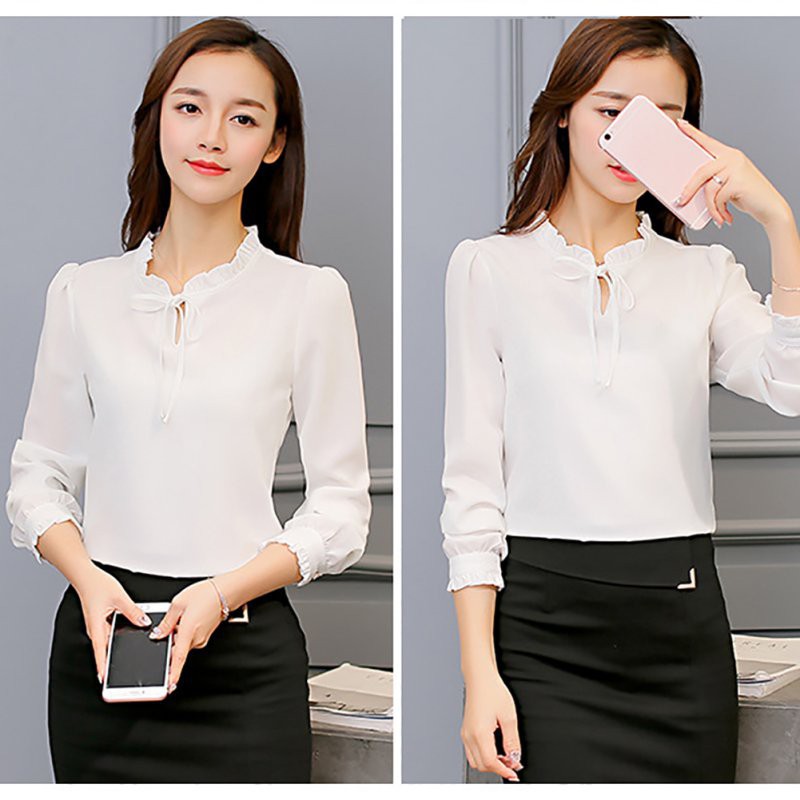 Women Long Sleeve Chiffon Shirt Slim Tops Blouse OL Lady Collared Suit Top Shopee Singapore Very well made.