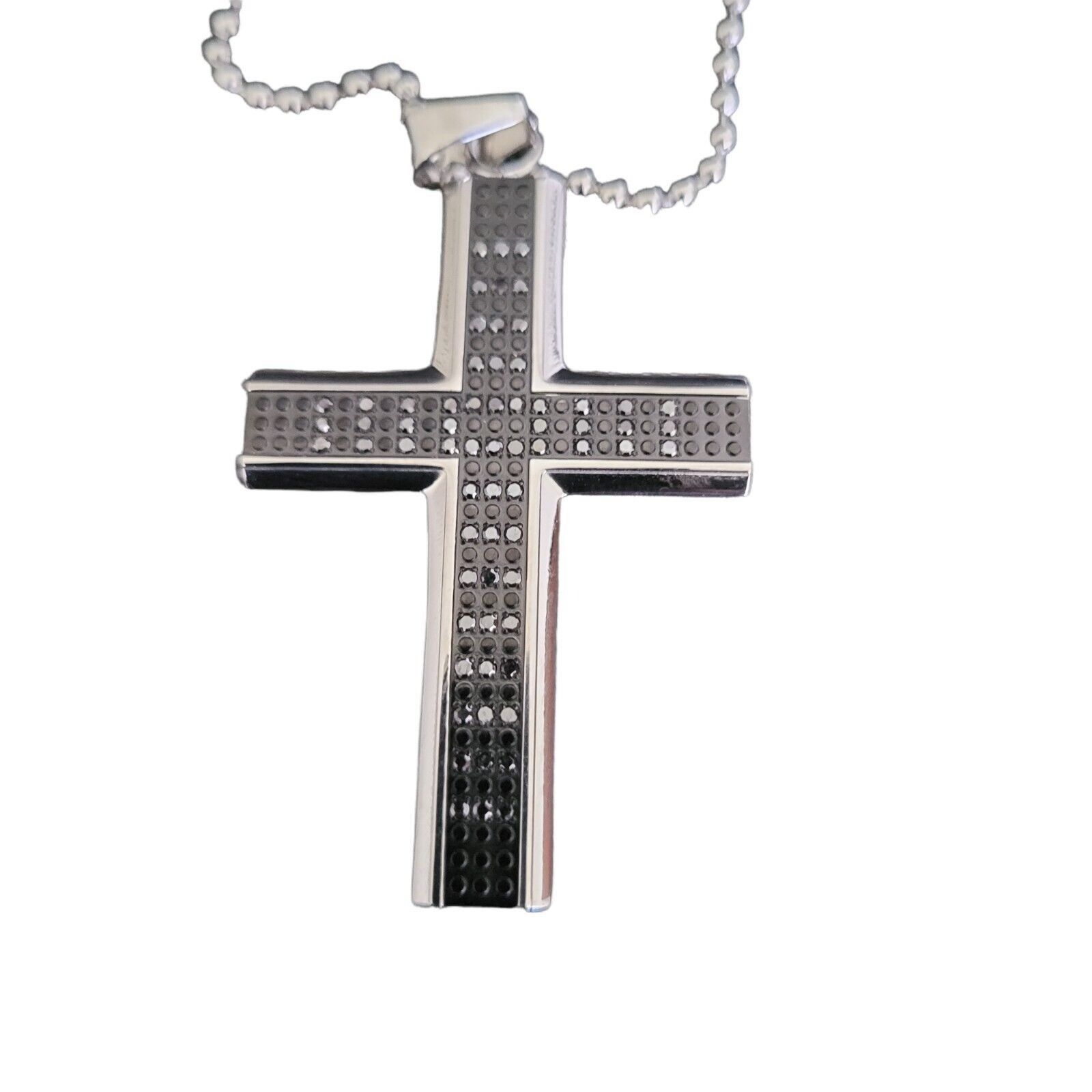 Macys Mens Diamond Cross Pendant Necklace. Black 24 inch Grailed Very well made.