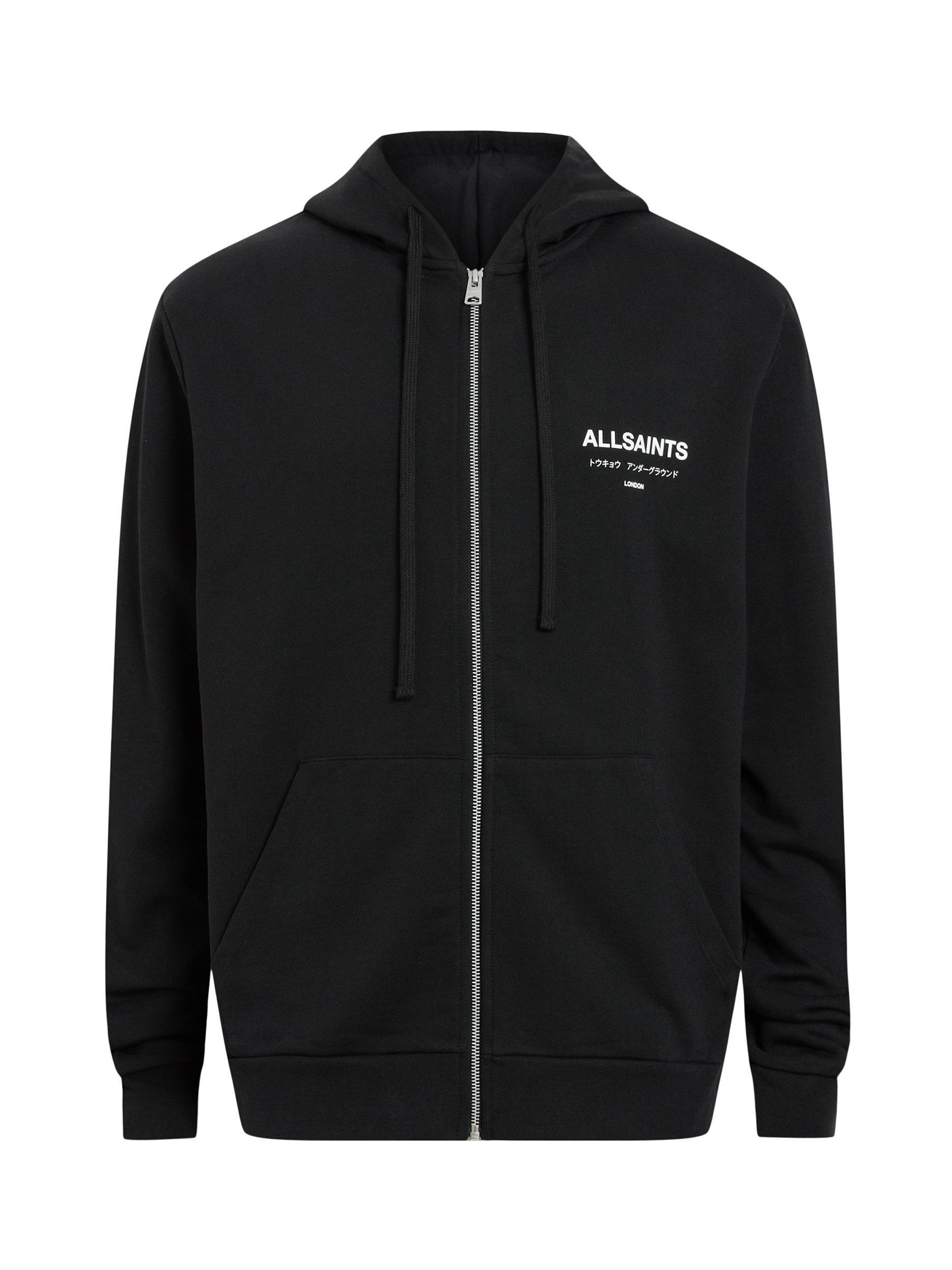 AllSaints Underground Organic Cotton Zip Through Hoodie Jet Black Very well made.