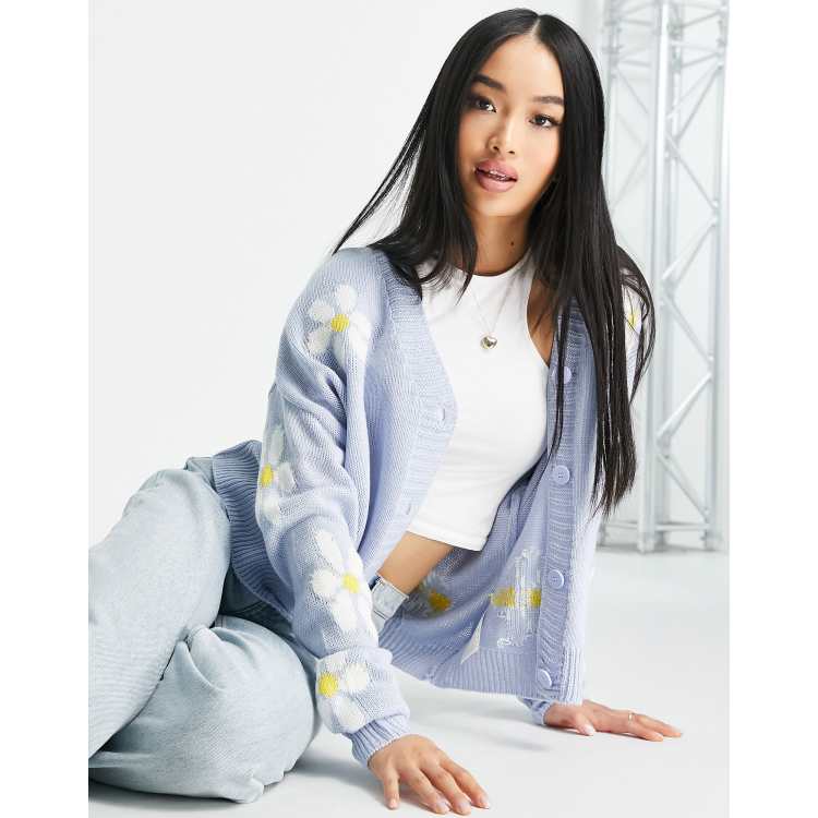 Pieces Cardigan in maglia blu con stampa con margherite ASOS Very well made.