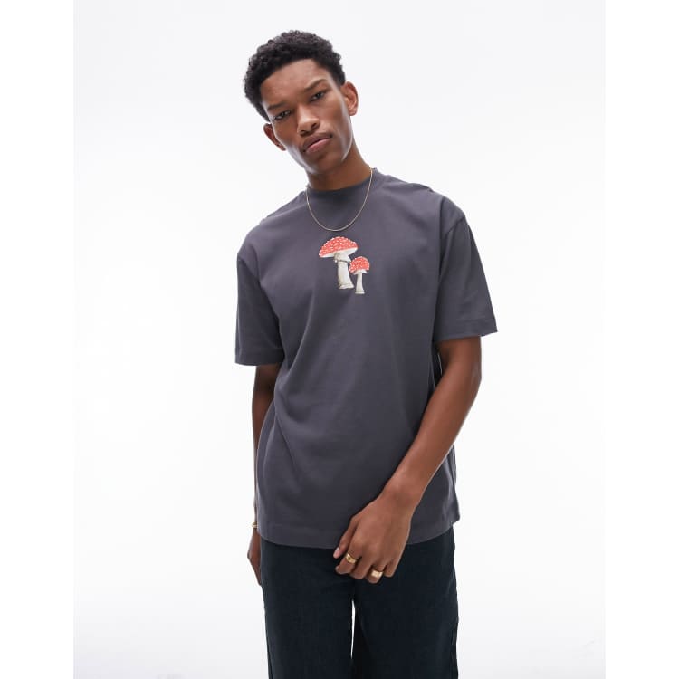 Topman T shirt oversize premium antracite con stampa di funghi dipinti ASOS Very well made.